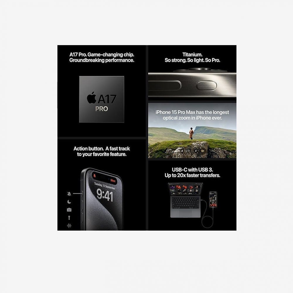 عن هذه السلعةمحصّن بالتيتانيوم - يأتيك iPhone 15 Pro Max بتصميم قوي وخفيف من التيتانيوم المستخدم في مجال الطيران والفضاء، مع سطح خلفي م...